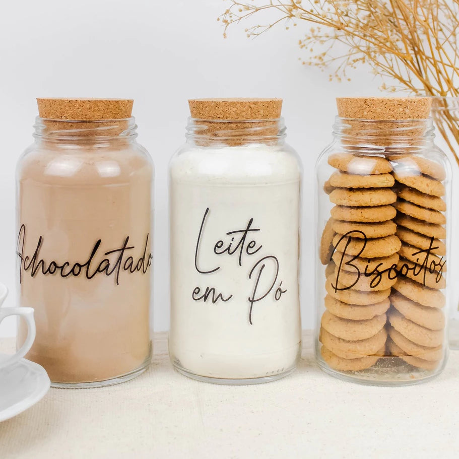 ✅ 3 potes de vidro 810ml resistentes e elegantes