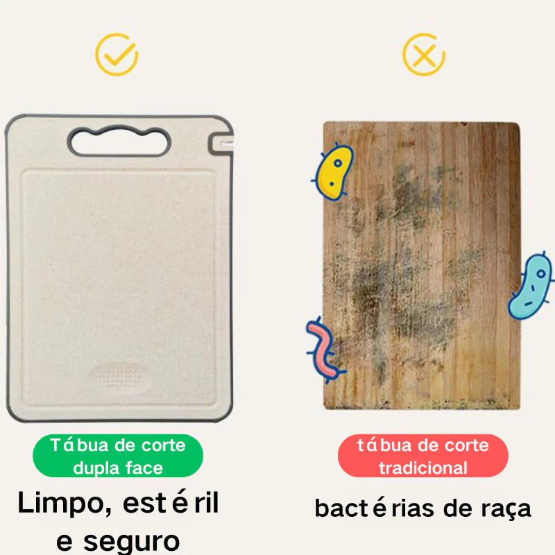 Perfeita para cortar desde carnes cruas até frutas cítricas, protegendo sua família com máxima higiene.