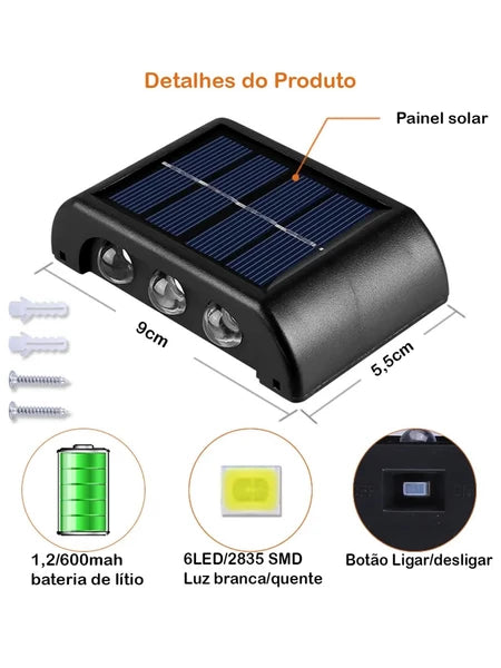 Incluso na Embalagem | 2x Lâmpadas LED solares, 4x Parafusos, 1x Manual, 1x Adesivo |