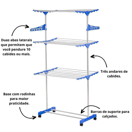 ✅ Chega de roupas espalhadas e secagem lenta – 3 andares organizam e aceleram a secagem.