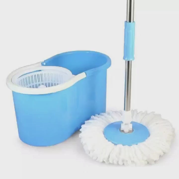 Balde com sistema giratório que seca o mop com um simples toque — sem esforço e sem mãos molhadas. Ficar trocando água e encharcando panos é demorado e ineficiente. Facilita o transporte entre os cômodos, sem mais carregar balde pesado.